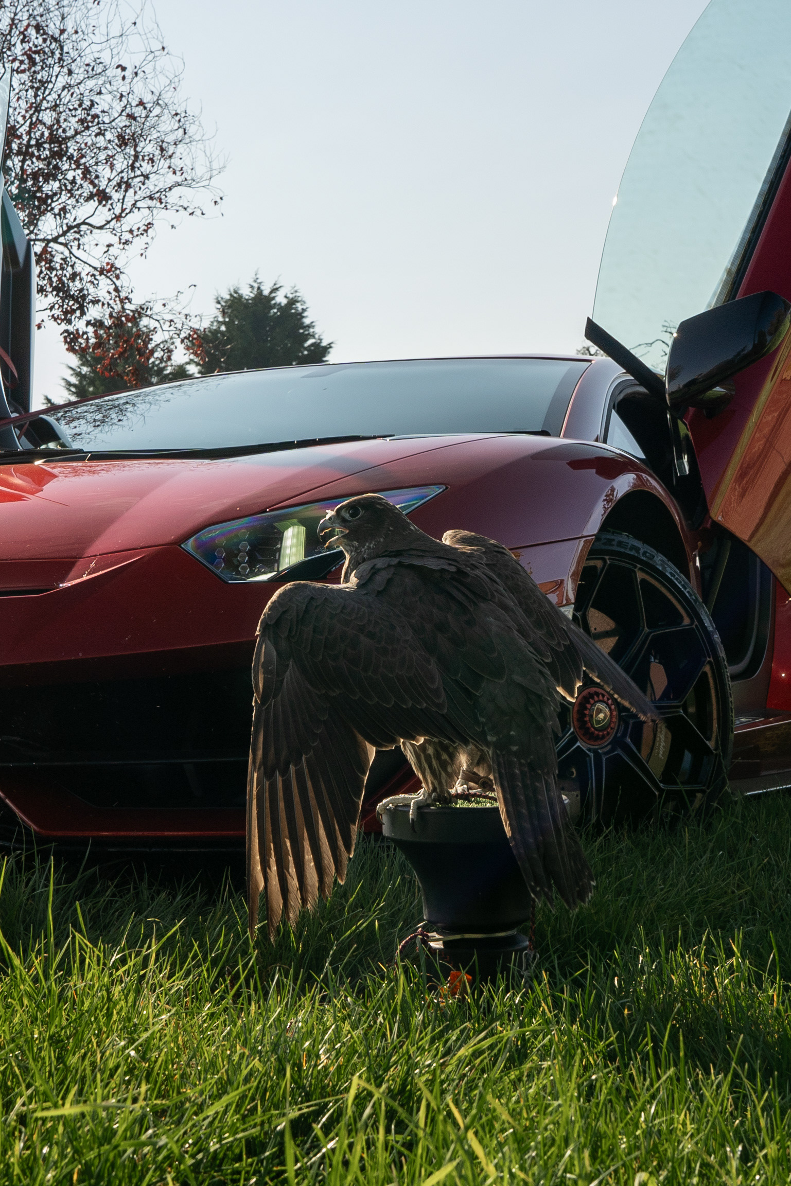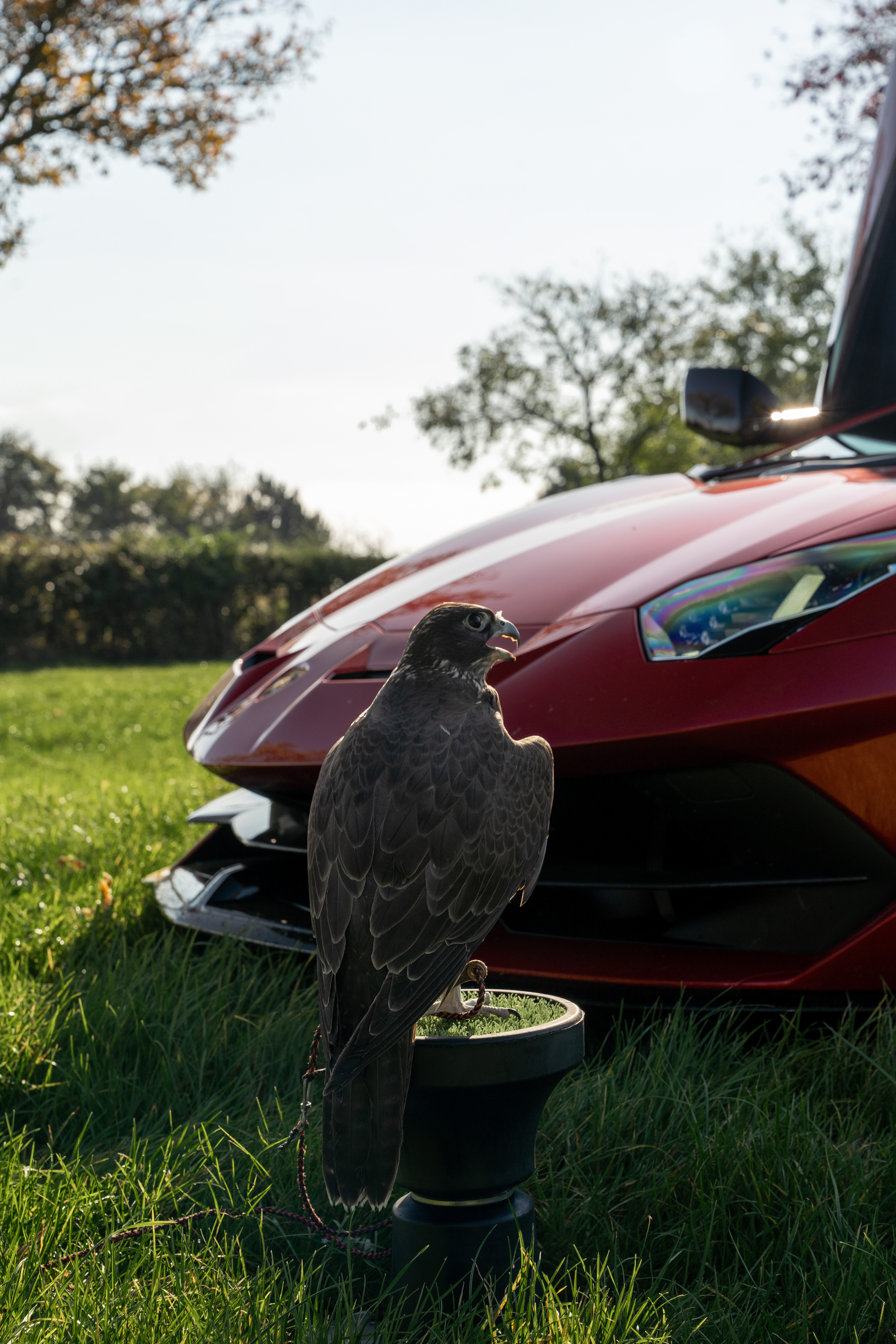It's definitely not something you see everyday - a £500k car with a £250k falcon in front of it